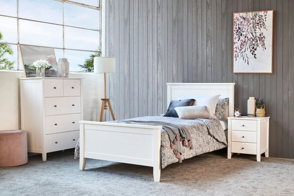 With its classic design and solid hardwood build, the Tyler Bed Frame is a dependable choice for growing kids. Available exclusively in King Single, it’s easy to complete the room’s look with the Tyler bedside, tallboy, matching underbed drawer, or underbed trundler for extra flexibility and function.