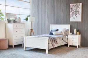 With its classic design and solid hardwood build, the Tyler Bed Frame is a dependable choice for growing kids. Available exclusively in King Single, it’s easy to complete the room’s look with the Tyler bedside, tallboy, matching underbed drawer, or underbed trundler for extra flexibility and function.