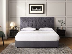 Bring timeless elegance to your bedroom with the Fendalton Headboard. Its deeply tufted design and plush cushioning offer both a striking look and exceptional comfort for relaxing in bed. Available in King Single, Queen, and Super King sizes, you can choose from four contemporary colours—Charcoal Black, Graphite Grey, Midnight Grey, or Sandstone—to perfectly complete your space.