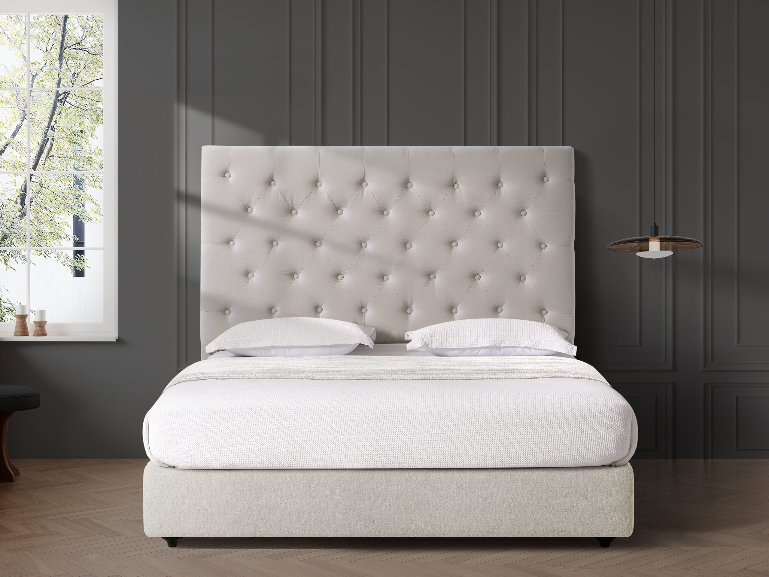 - Create a luxurious focal point with the classic diamond tufted design.