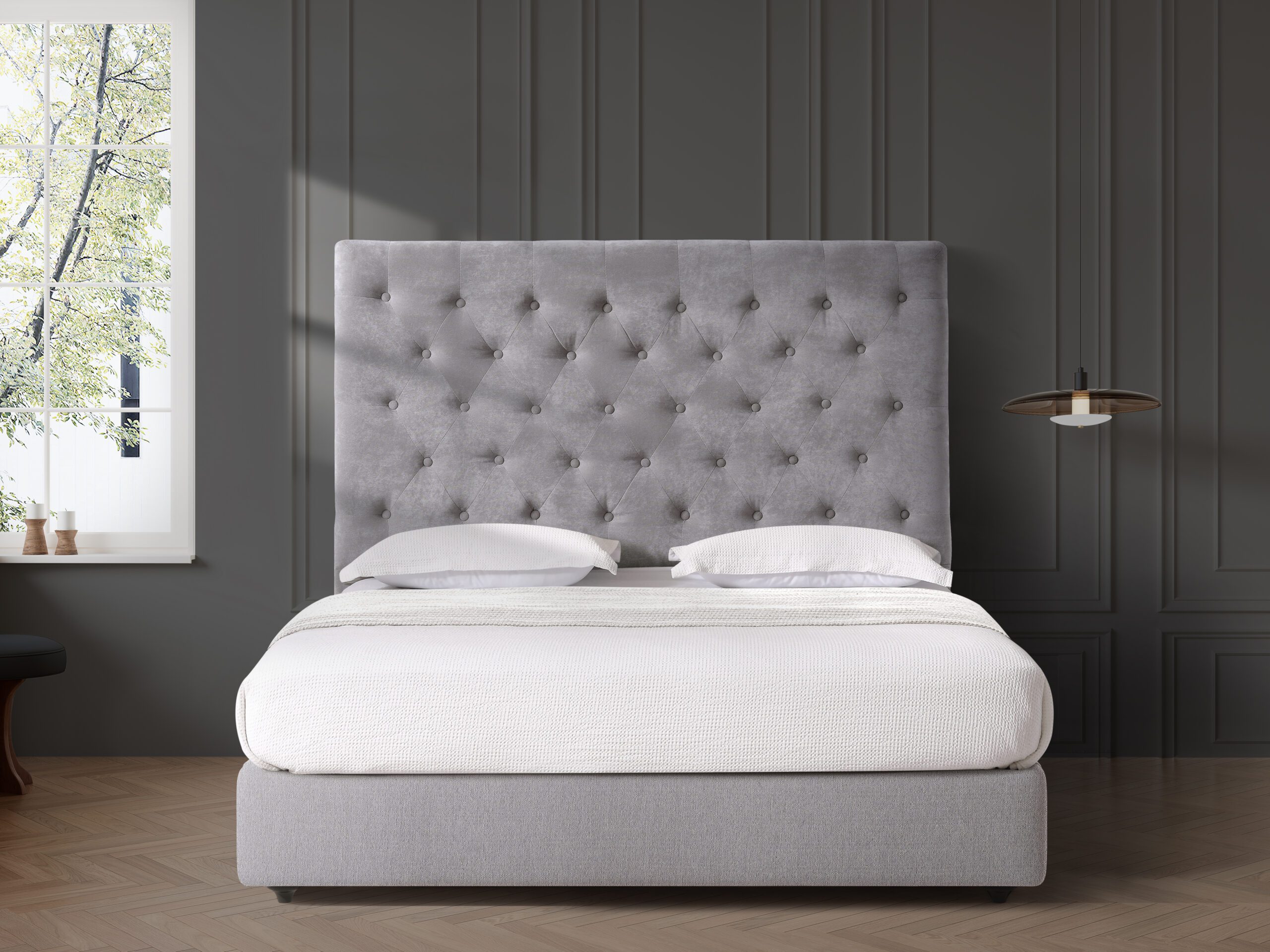 The Epsom features a timeless diamond tufted design with plush velvet upholstery that adds a luxurious feel to any space. Its versatile style complements both classic and contemporary interiors, making it a perfect addition to your bedroom. With a choice of four elegant shades, it combines sophistication with everyday comfort.