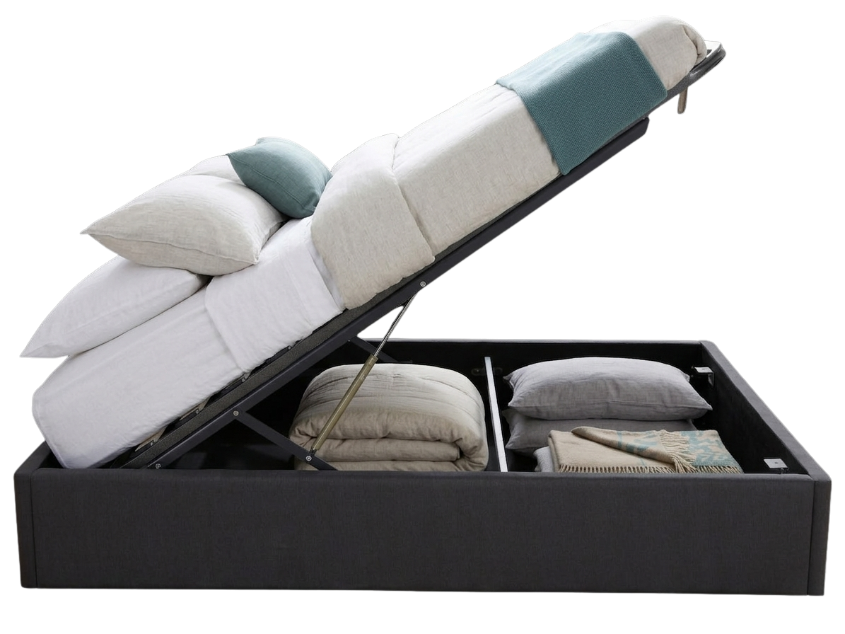 Want a bed with a super power? Newtown won’t leap buildings, but it will tidy a whole lot of life into its under base storage. The spring assist gas struts (70 kg rating) make lifting smooth and simple — the mattress acts as a counterweight so you don’t need brute strength. Inside, a full bottom board keeps everything off the floor and dust free, with room for linen, winter duvets, sports gear or that suitcase you only use once a year. Upholstered in Slate for a calm, modern look, and headboard ready to pair perfectly with our Fendalton or Parnell headboards in the same fabric.